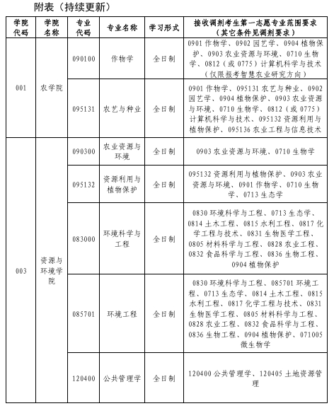 拟接收调剂的专业和拟接收调剂专业对考生第一志愿专业范围等要求,详见附表。